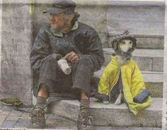Ocho de la mañana, uno con veinte en el plato, el mendigo mira al cielo, se incorpora aún con ganas, le peina a Sultán el pelo y bebe el café barato. En la puerta de la escuela, un Jaguar para deprisa y un niño baja del coche. Aún en la duermevela, baja sin una sonrisa y esconde su cara en la noche. Ayer con mucha cautela vió desde la cornisa a su padre hecho un fantoche y a su madre con dos muelas por el suelo hechas trizas: su impotencia es un derroche. El mendigo abre su lata y escoge una buena colilla. Prende al pasar por su barba su penúltima cerilla y hace una O en el aire con Sultán en las rodillas. Es domingo, compañero, le dice dándole un beso, y aunque estemos sin dinero, yo no miento, ¿non è vero ?: Hoy tendrás un noble hueso pues tú eres lo primero. Son las ocho de la tarde. y sale de la oficina un hombre con mucha clase vistiendo con gabardina. Se lleva la mano al pecho, ha vuelto el conato de infarto y se apoya en una esquina. El dinero que le ensalza, el estrés que le asesina, echa cien euros al plato, que para él son propina, envidia a mendigo y a perro y al amor que se destilan. El mendigo mira a Sultán y este asiente poco a poco. ¿Quién es más loco al final, en este mundo de locos?