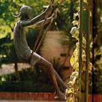 En un espigón de mi pueblo siempre hubo una chavala con el pelo contra el viento, surfeando a barlovento ... y el agua no la tocaba, la cambiaron de lugar mas siempre por el Skol, siempre, siempre junto al mar, donde ella pueda esquiar y le dé en la piel el sol, tiene la piel curtida y es dos veces bronceada, la broncea el sol de arriba, ... y venía ya de salida de bronce desde Granada, olvidada en una nave hoy surca libre de nuevo, después de que (quién lo sabe) encontrara un día la llave y dijera: ¡me la llevo!, y cuentan que hay ciertas noches que surfea hasta la Alameda, y así, esquivando los coches, va y se abraza en un derroche con su hermana, que la espera, y es entonces desde el cielo, cuando baja López Burgos, les peina a las dos el pelo y luego, con mucho celo, las va columpiando por turnos. NOTA: el escultor Francisco López Burgos hizo por encargo a finales de los 60´s dos esculturas para Marbella: la Venus y la Niña del Columpio. Hoy Arturo Reque y yo hicimos a los pies de la primera este dibujo y poema.
