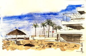 En Marbella hay tres puertos, uno de ellos deportivo, donde diste el primer muerdo cuando eras inexperto y eras feliz por castigo, (y estos son los trazos rectos del que hoy es arquitecto y entonces ya era mi amigo)
